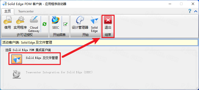 20.点击【Solid Edge及文件管理】图标,点击【退出】