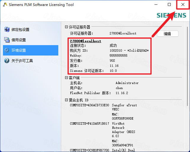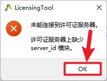 26.如果弹出以下界面,选择【已有许可证服务器名称】,输入服务器名称【27800@localhost】,点击【确定】