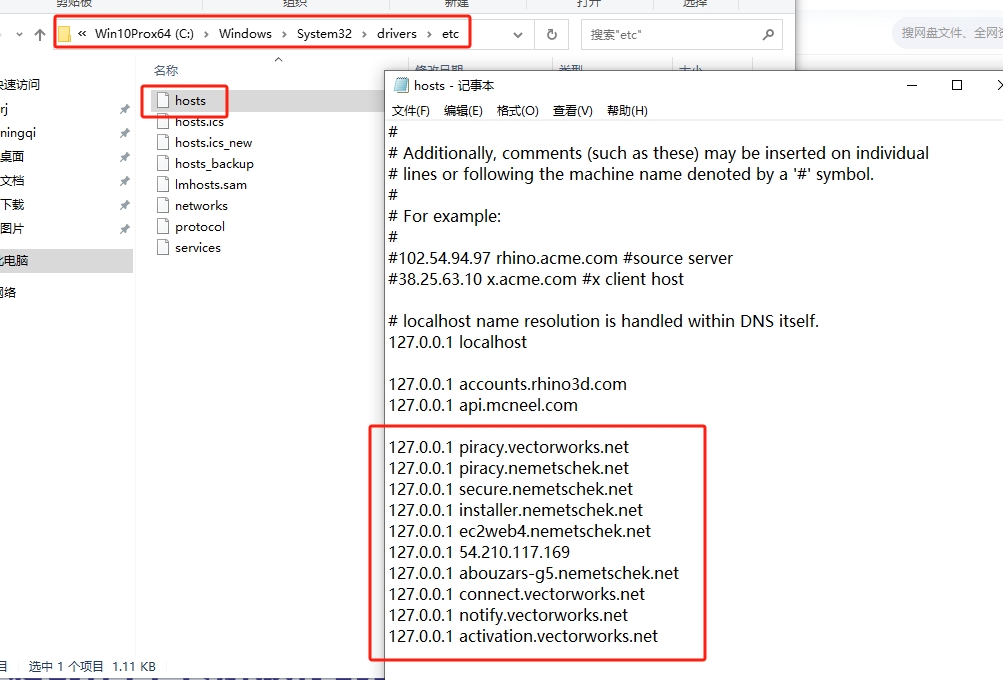 2、打开路径C盘\Windows\System32\drivers\etc里面的hosts文件输入内容,然后保存hosts文件。