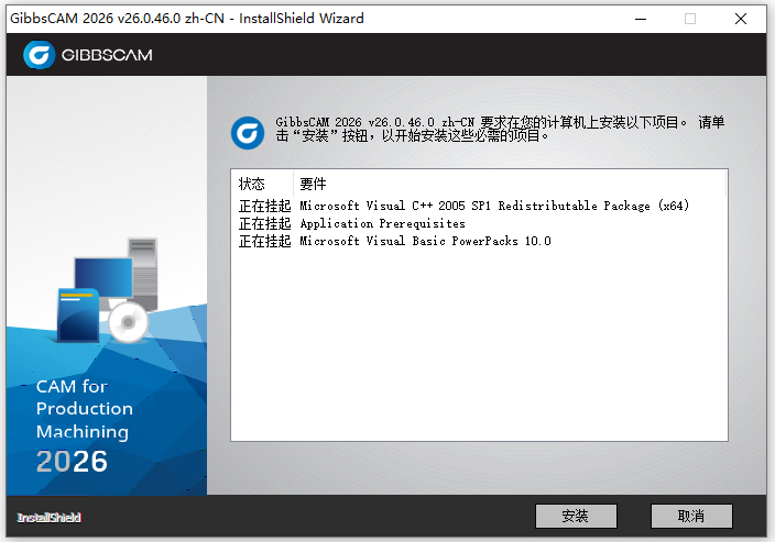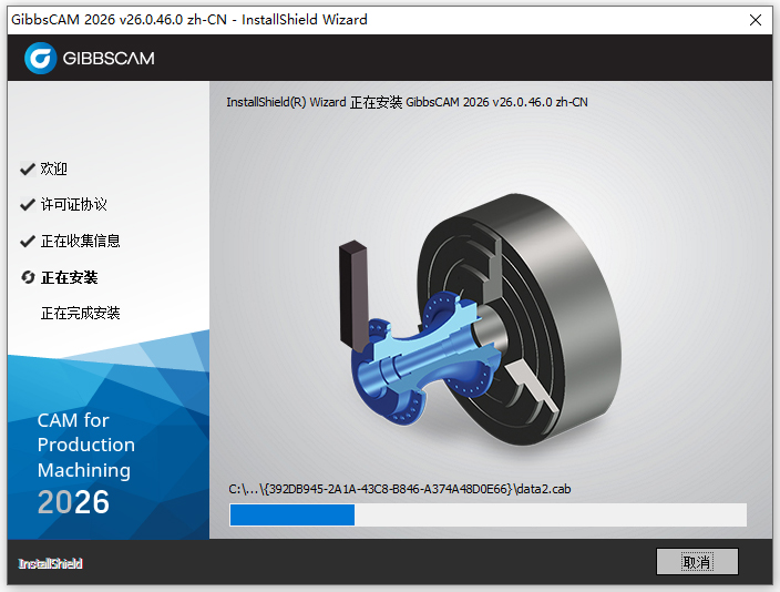 2、双击文件GibbsCAM_x64_v26.0.46.0_zh-CN.exe开始安装;