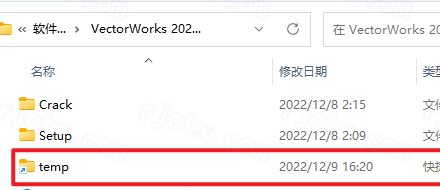 4.回到安装包解压后的【VectorWorks 2023(64bit)】文件夹,双击打开【temp】快捷方式