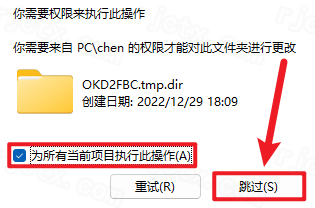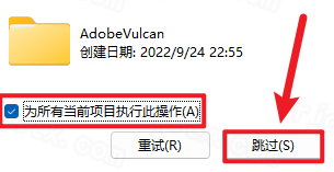 6.勾选【为所有当前项目执行此操作】,点击【跳过】(无法删除的文件均点击“跳过”)