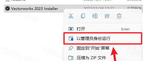 9.鼠标右击【Vectorworks 2023 Installer】选择【以管理员身份运行】