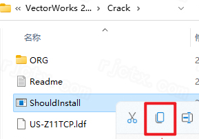 26.回到安装包解压后的【VectorWorks 2023(64bit)】文件夹下的【Crack】文件夹,鼠标右击【Vectorworks 2023】选择【复制】,回到安装包解压后的【VectorWorks 2023(64bit)】文件夹下的【Crack】文件夹,鼠标右击【Vectorworks 2023】选择【复制】(图中有误)