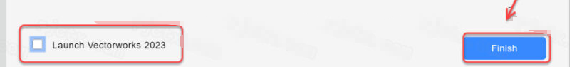 25.等待软件后台自动安装,取消勾选【Launch Vectorworks 2023】,点击【Finish】(注意:如果安装软件卡在95%,请耐心等待安装,如果一直需要等待,可以在任务管理器中强制停止安装,并继续按照步骤操作)