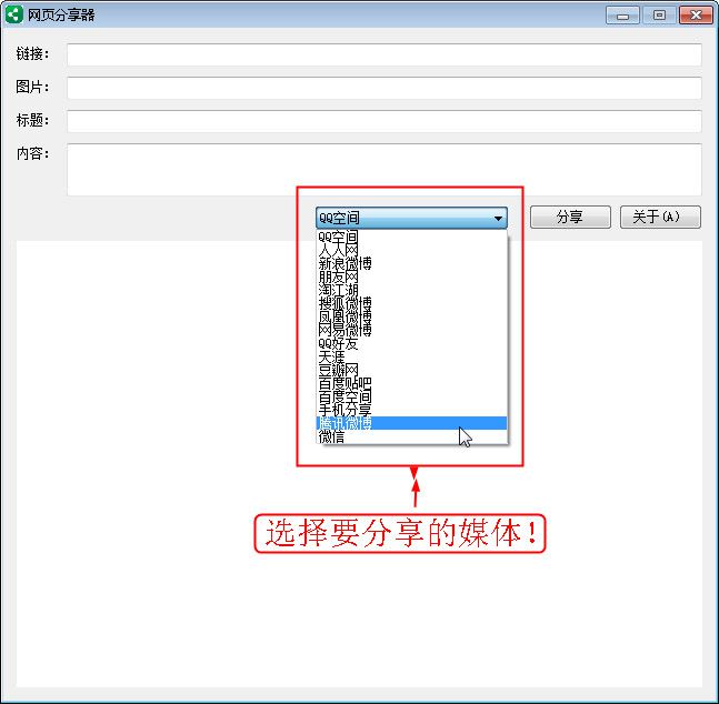 网页分享器分享平台有人人网、新浪微博、朋友网、淘江湖、搜狐微博等等!