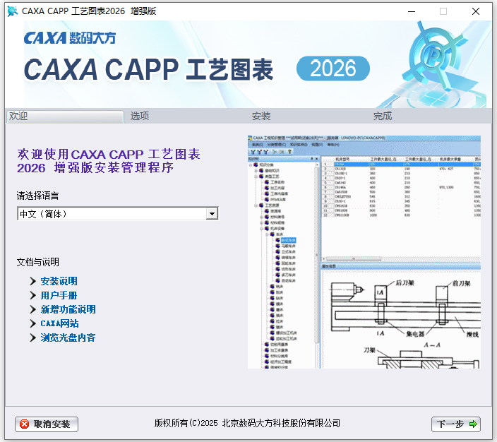 2、将CAXACAPP2026SP0EE.zip文件解压或用虚拟机加载,双击setup.exe,设置中文简体;