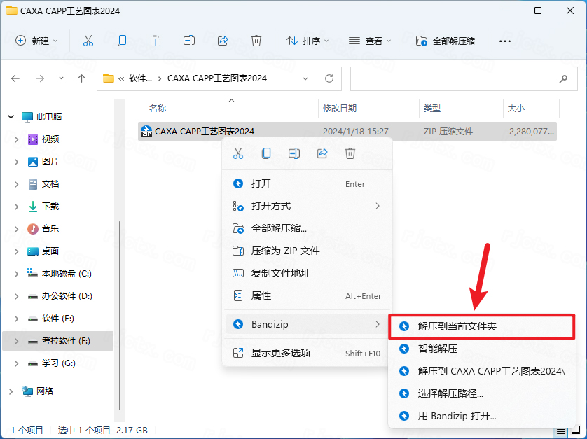 1.下载完成后,鼠标右击【CAXA CAPP工艺图表 2024】压缩包,选择【解压到当前文件夹】