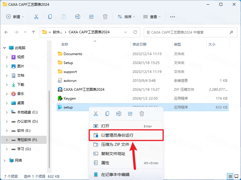 2.鼠标右击【Setup】选择【以管理员身份运行】