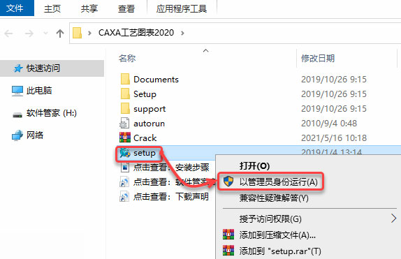 12、然后右击Caxa2020 Patch文件,点击以管理员身份运行即可。
