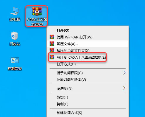 1、鼠标右击CAXA工艺图表2020安装包,选择解压到CAXA工艺图表2020选项。