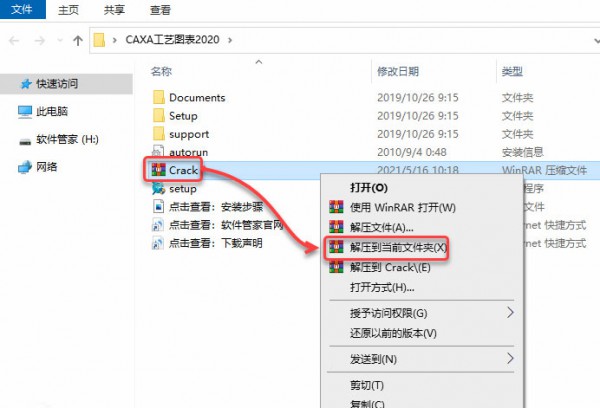 11、右击CracK压缩包,点击解压到当前文件夹选项。