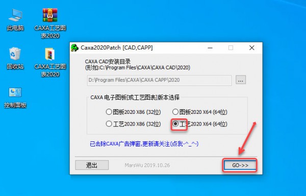 13、勾选工艺2020 X64选项,点击GO>>。