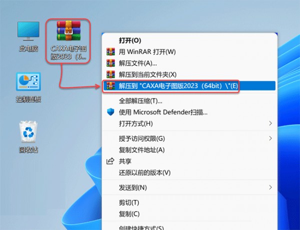 1、鼠标右击CAXA电子图版2023安装包,选择解压到CAXA电子图版2023。