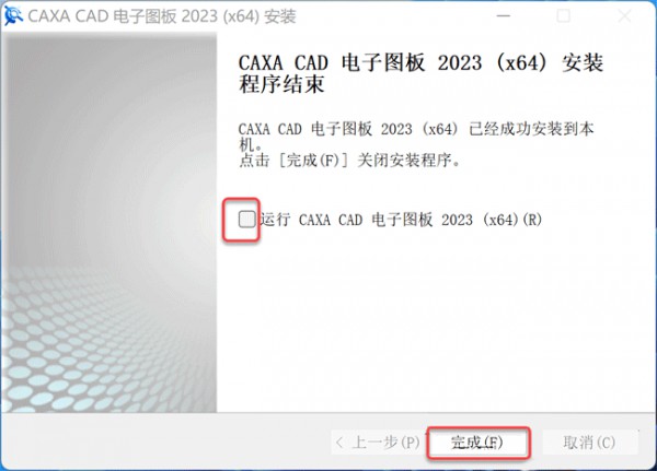 8、取消勾选运行CAXA CAD 电子图板 2023,点击完成即可。