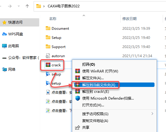 10、返回安装包,鼠标右击Crack压缩包,选择解压到当前文件夹。