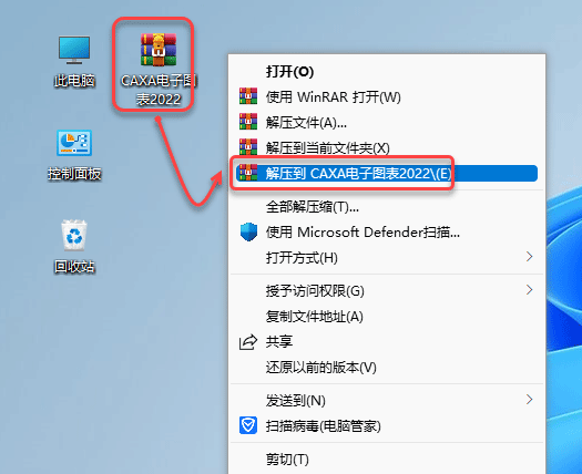 1、鼠标右击CAXA电子图板2022安装包,选择解压到CAXA电子图板2022选项。