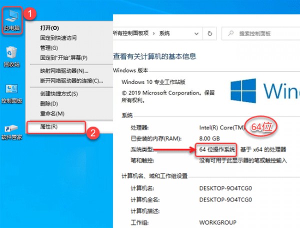 4、如果你不知道自已电脑是多少位的系统,可以通过鼠标右击此电脑,点击属性,点击64位操作系统。