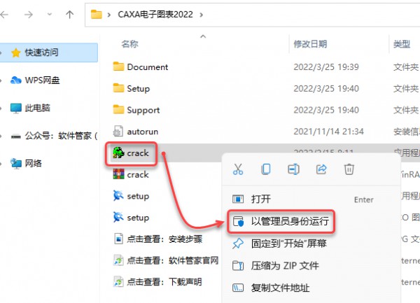 11、鼠标右击Crack文件,点击以管理员身份运行。