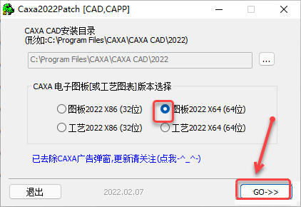 12、勾选图板2022 X64 ,点击GO>>