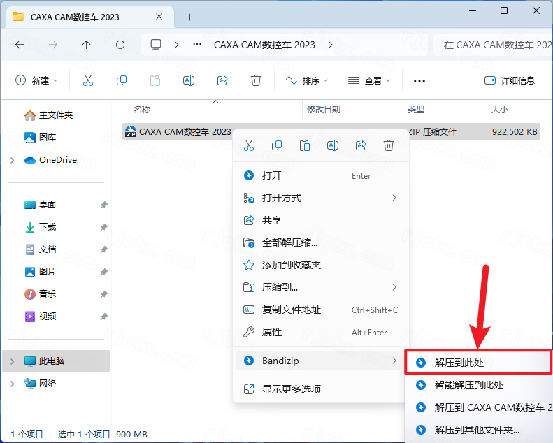 1.下载完成后,鼠标右击【CAXA CAM 数控车 2023】压缩包,选择【解压至此处】