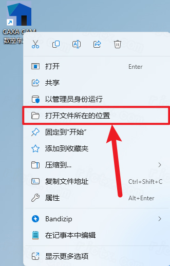 10.鼠标右击桌面【CAXA CAM数控车 2023】图标选择【打开文件所在的位置】