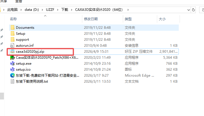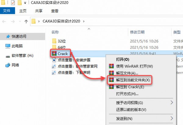 1、右击CAXA3D实体设计2020安装包,选择解压到CAXA 3D实体设计2020选项。