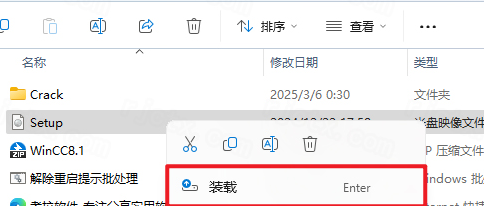 10.继续在打开解压后的【WinCC8.1(64bit)文件夹中,鼠标右击【Setup】选择【装载】(如果没有”装载“请点击“打开方式”选择“Windows资源管理器”打开)