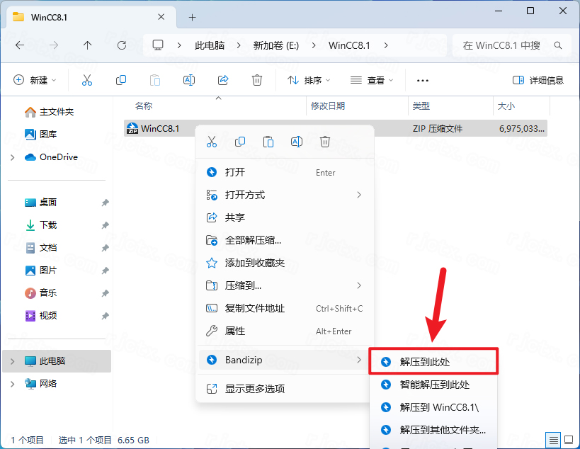 1.下载完成后,鼠标右击【WinCC 8.1】压缩包,选择【解压至此处】
