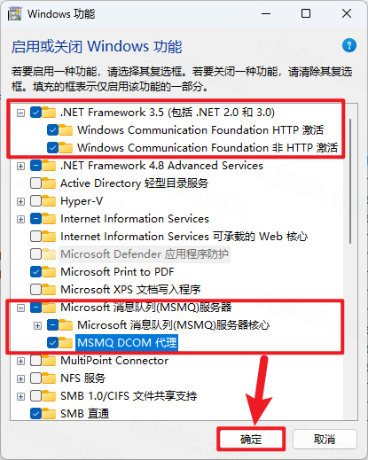 4.选择【.NET….3.5】和【Microsoft消息队列…】,点击【确定】