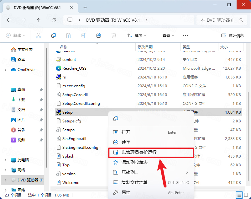 11.在装载后的文件夹中,鼠标右击【Setup】选择【以管理员身份运行】