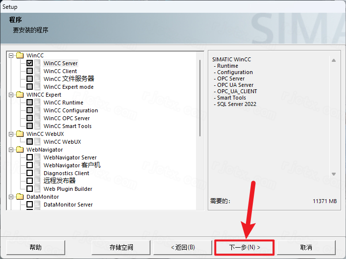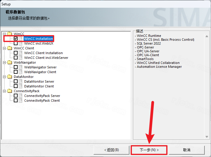 19.勾选需要安装的程序(如:勾选WinCC Installation),点击【下一步】