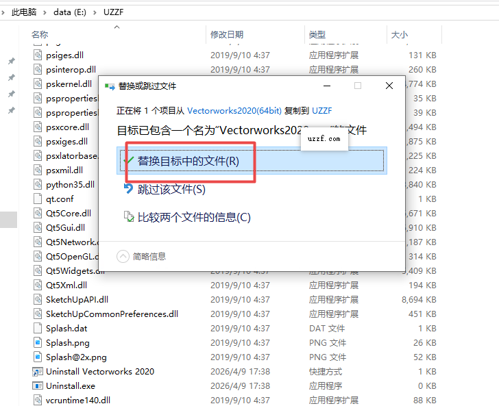 11、然后直接把刚才复制的程序,选择粘贴到该文件夹即可破解成功,选择替换文件,如下图