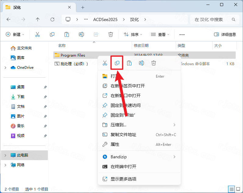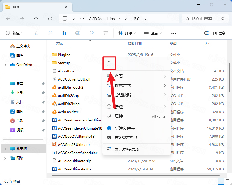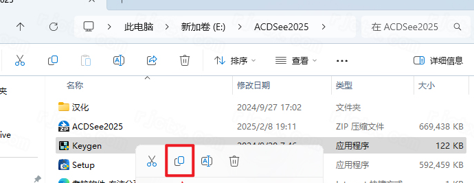 6.打开安装包解压后的【ACDSee 2025】文件夹,鼠标右击解压出来的【Keygen】选择【复制】