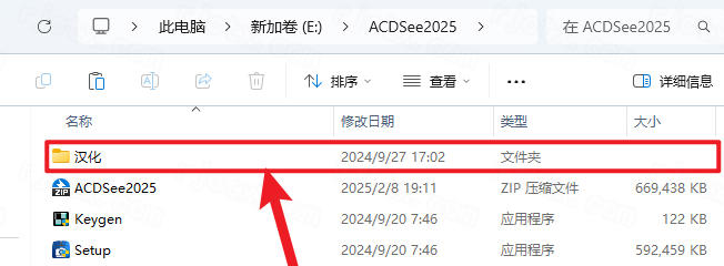 12.打开安装包解压后的【ACDSee 2025(bit)】文件夹,双击打开【汉化】文件夹