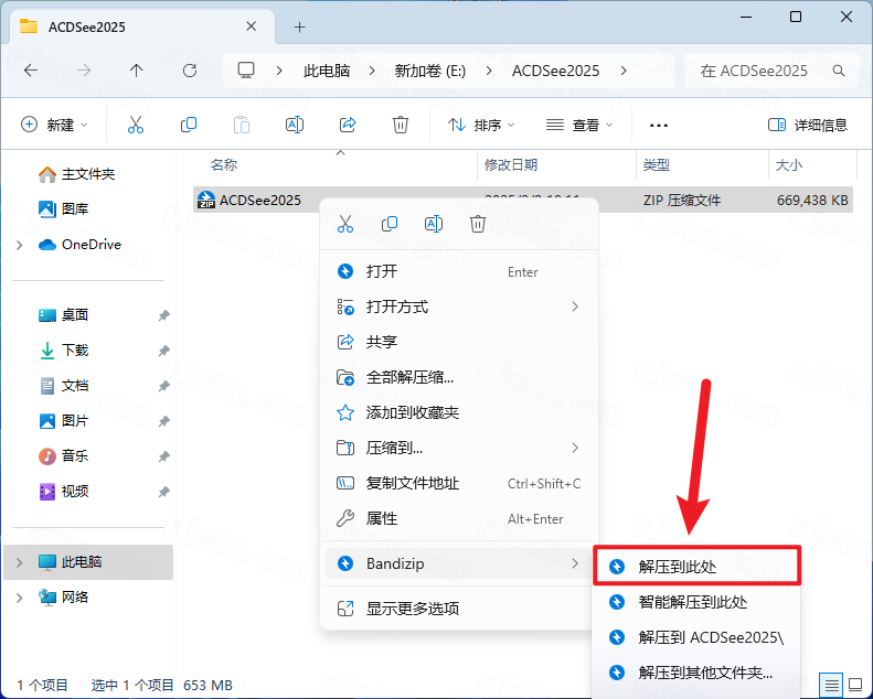 1.下载完成后,鼠标右击【ACDSee 2025】压缩包,选择【解压至此处】