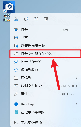 7.鼠标右击桌面【ACDSee……】图标选择【打开文件所在的位置】