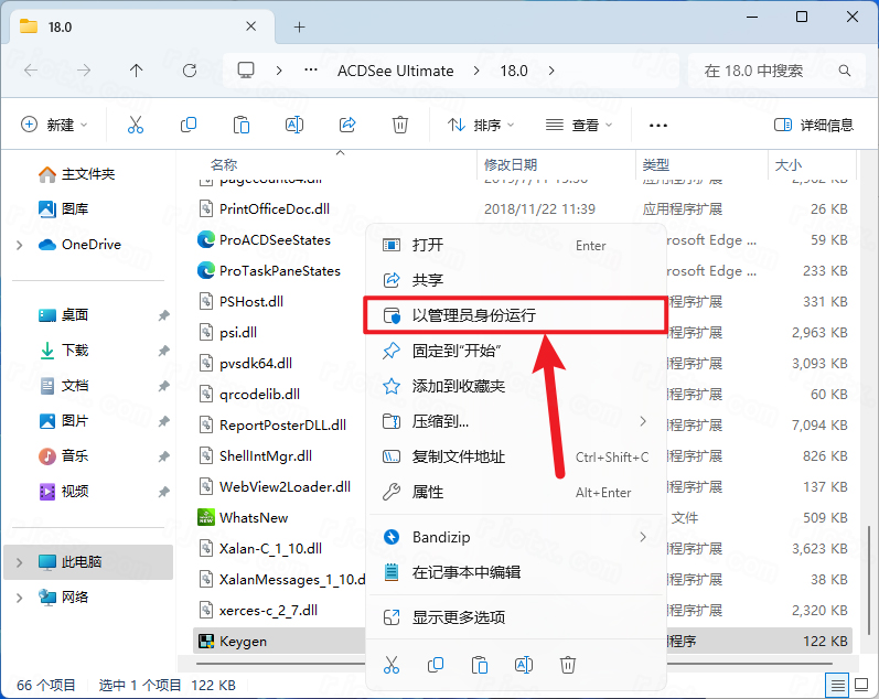 9.鼠标右击粘贴后的【Keygen】选择【以管理员身份运行】