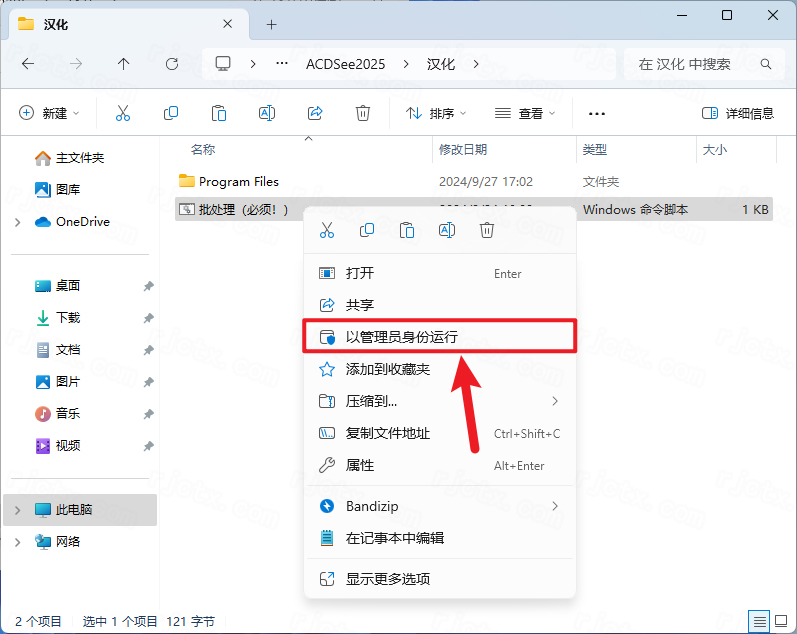 13.鼠标右击【批处理…】选择【以管理员身份运行】(程序运行后会自动关闭)