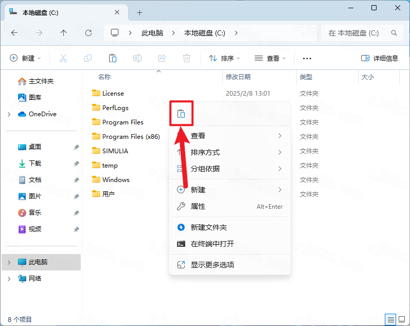 15.打开软件的安装位置【如:C】(若您在步骤3修改到了其它盘,请打开修改后的磁盘对应位置)鼠标右击空白处选择【粘贴】