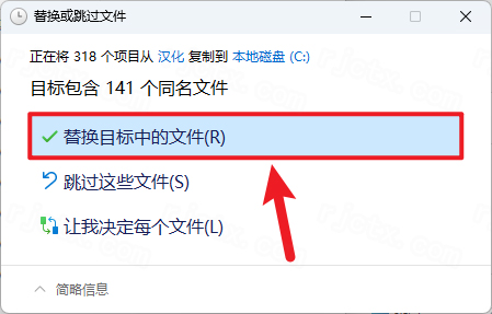 16.点击【替换目标中的文件】