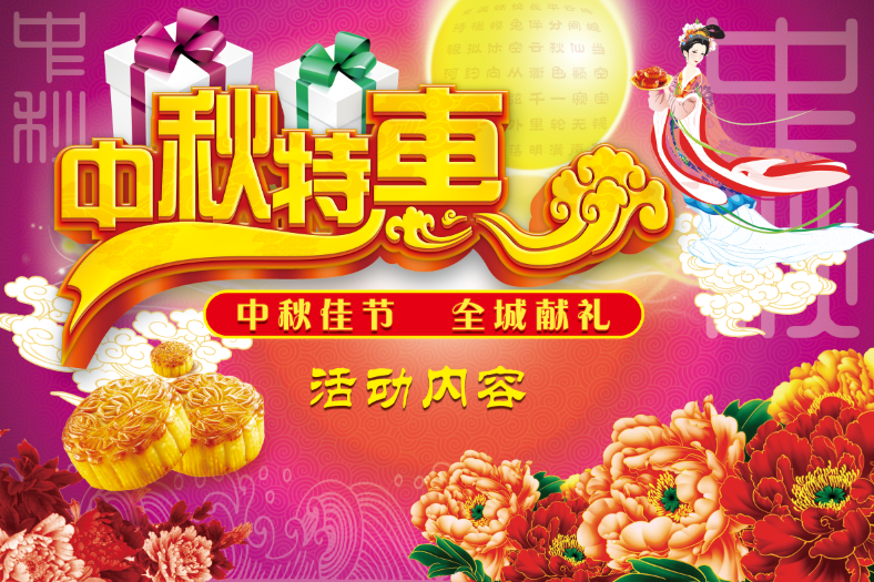 很多商家都会在中秋佳节的时候推出各种各样的促销活动,要搞促销就需要制作相应的活动海报,这里给大家提供的是中秋特惠促销活动海报的psd免费素材下载,适合拿来制作各种样式的中秋节促销海报!