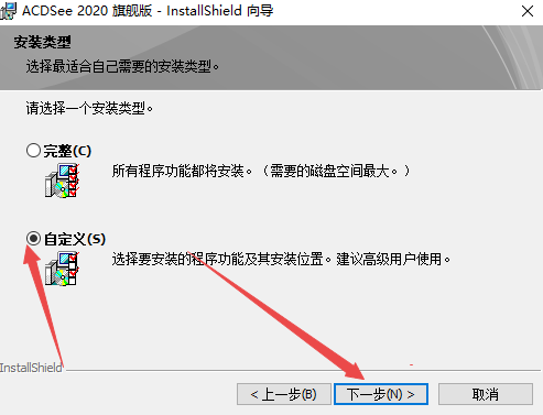 4、然后选择自定义安装