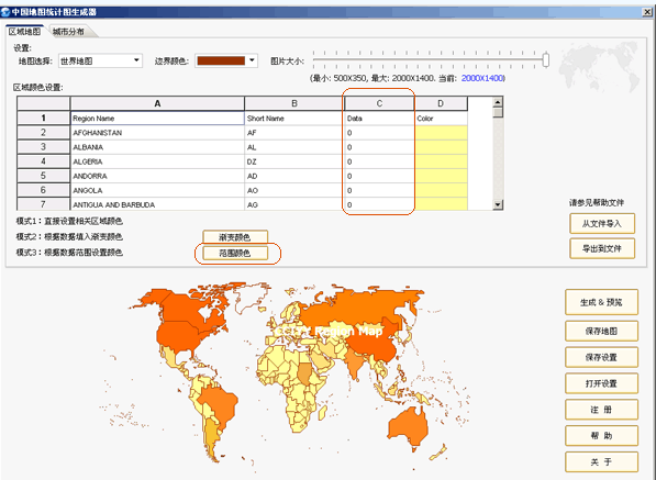 在这一步里面,您可以对地图的属性进行设置。比如:地图,边界,地图大小,每个区域的颜色等。有三种不同的设置方法。
