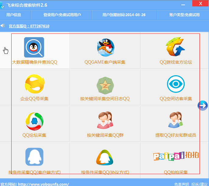 飞来综合搜索软件就是最新开发出来的用户相关信息搜索软件,支持包括QQ空间,QQ邮箱等等功能,让大家可以最得到最新信息,是营销方面最需要的神器,觉得不错的可以来下载使用。
