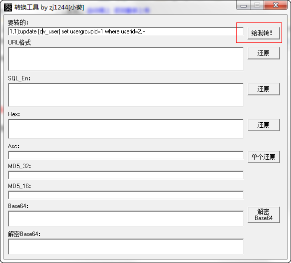 支持将普通编码转换为多种常见格式的编码,包括有:URL/SQL_En/Hex/Asc/MD5_32/MD5_16/Base64等格式的编码,还支持解密base64编码