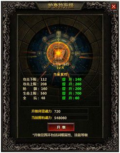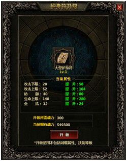 在升级界面内,玩家可以清晰的看到护身符的当前属性和提升后属性。
