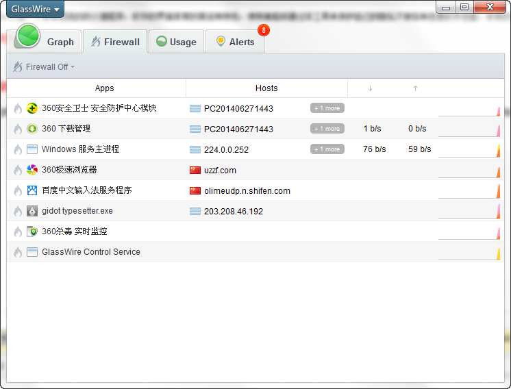 电脑防火墙软件(GlassWire)是一个非常漂亮的防火墙程序,软件的界面非常的简洁有特色,使用者能够通过本工具来保护自己的隐私不被各种恶意软件泄露,非常的安全实用。