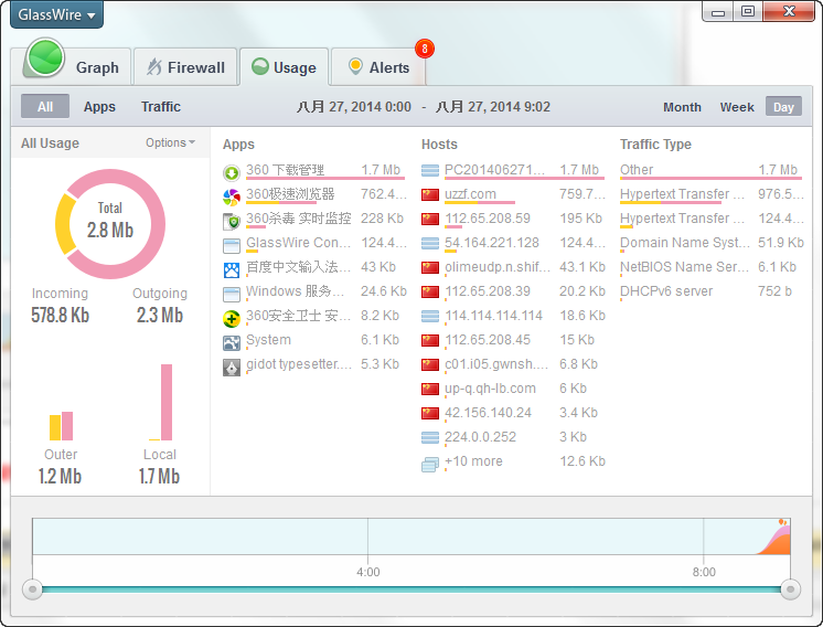 保护您的计算机通过监控网络GlassWire 在容易理解寻找不寻常的互联网行为可能表明恶意软件或侵犯您的隐私的行为时的图上显示您的网络活动。一次不寻常的网络活动被发现你立刻提醒您提供详细的资料以便您可以保护您的计算机、 隐私和数据。