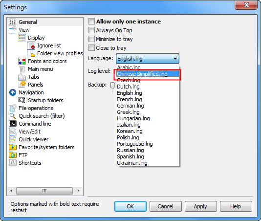 在设置窗口中找到Language,选择Chinese Simplified.lng即可